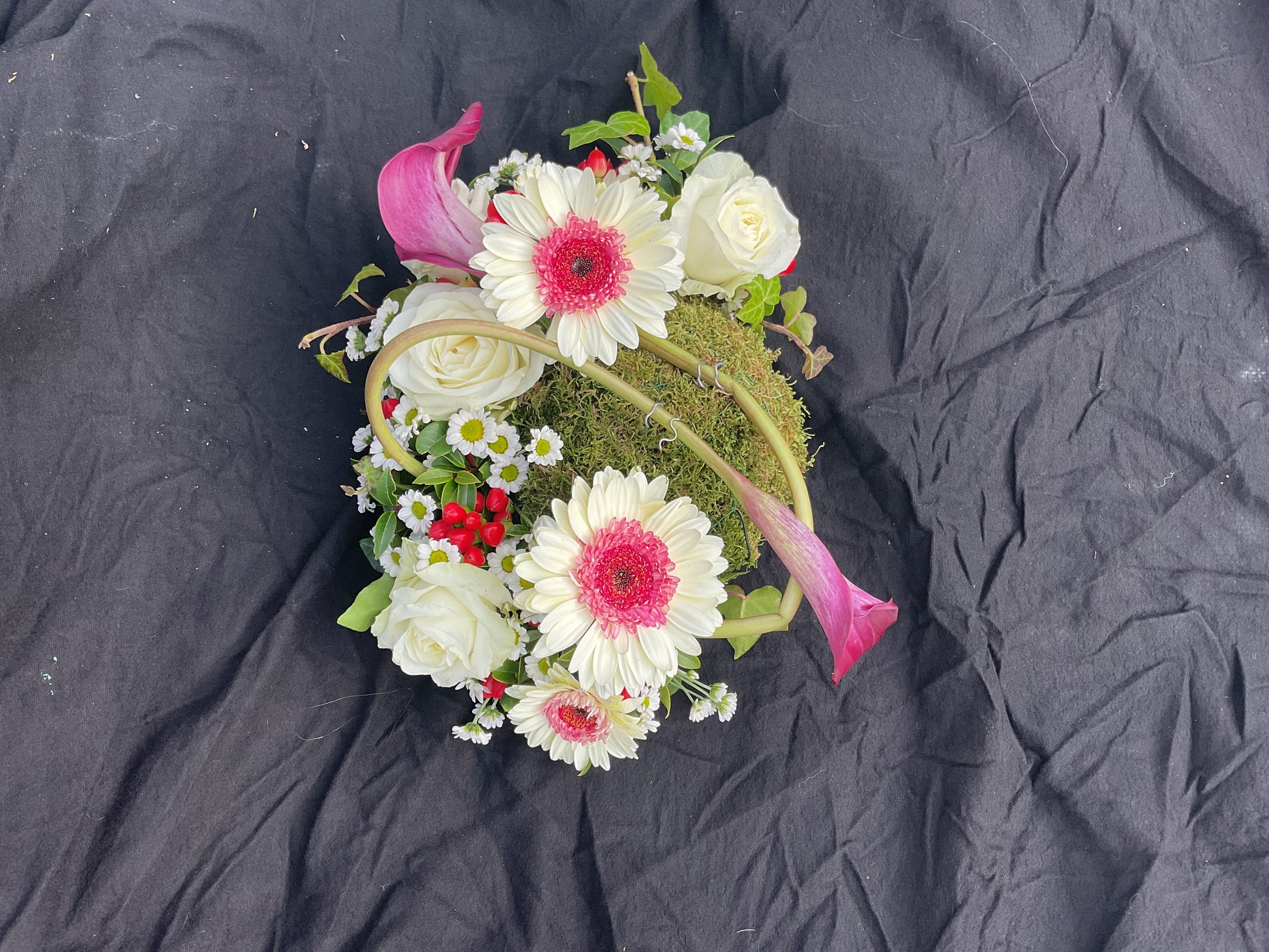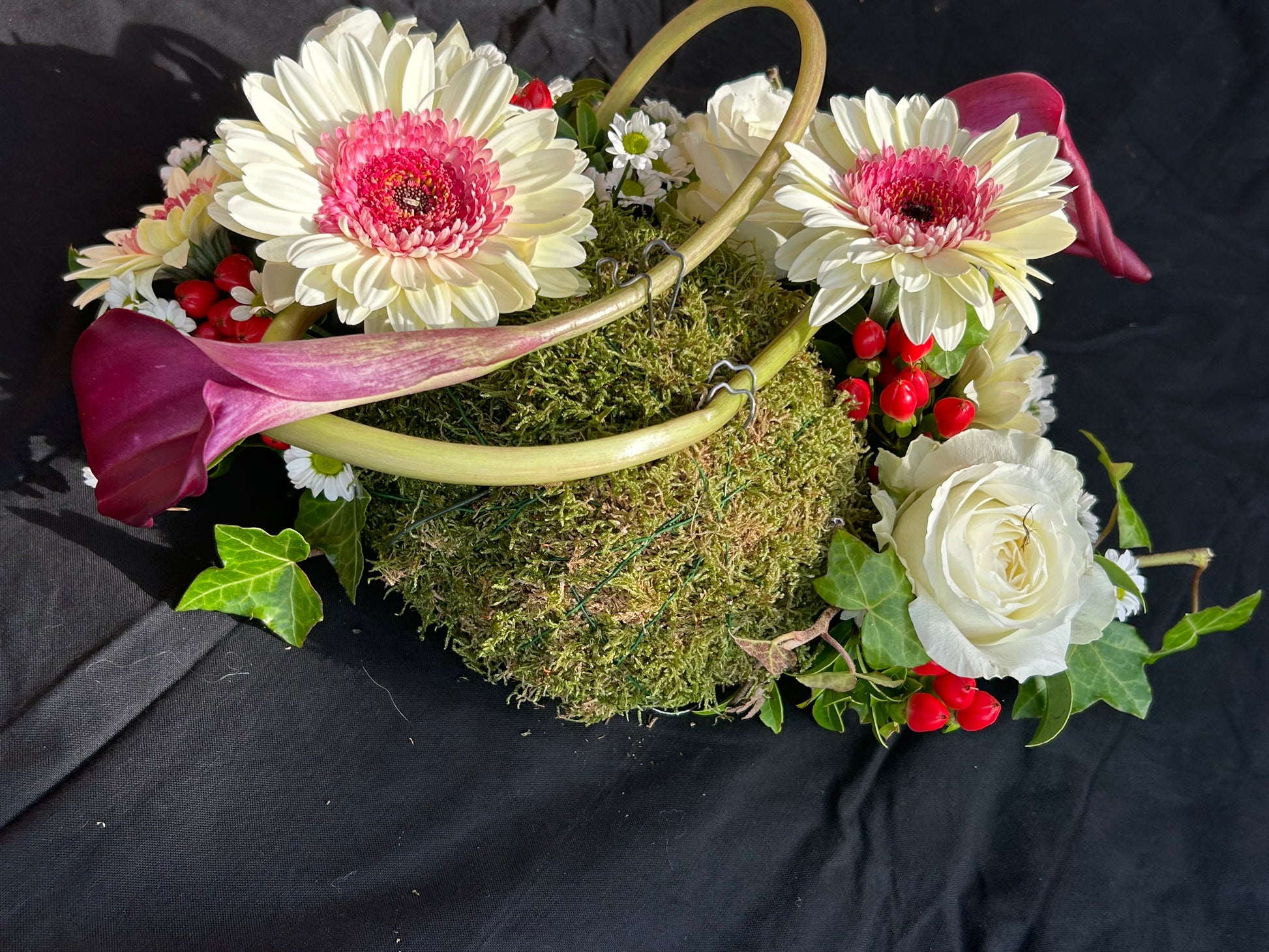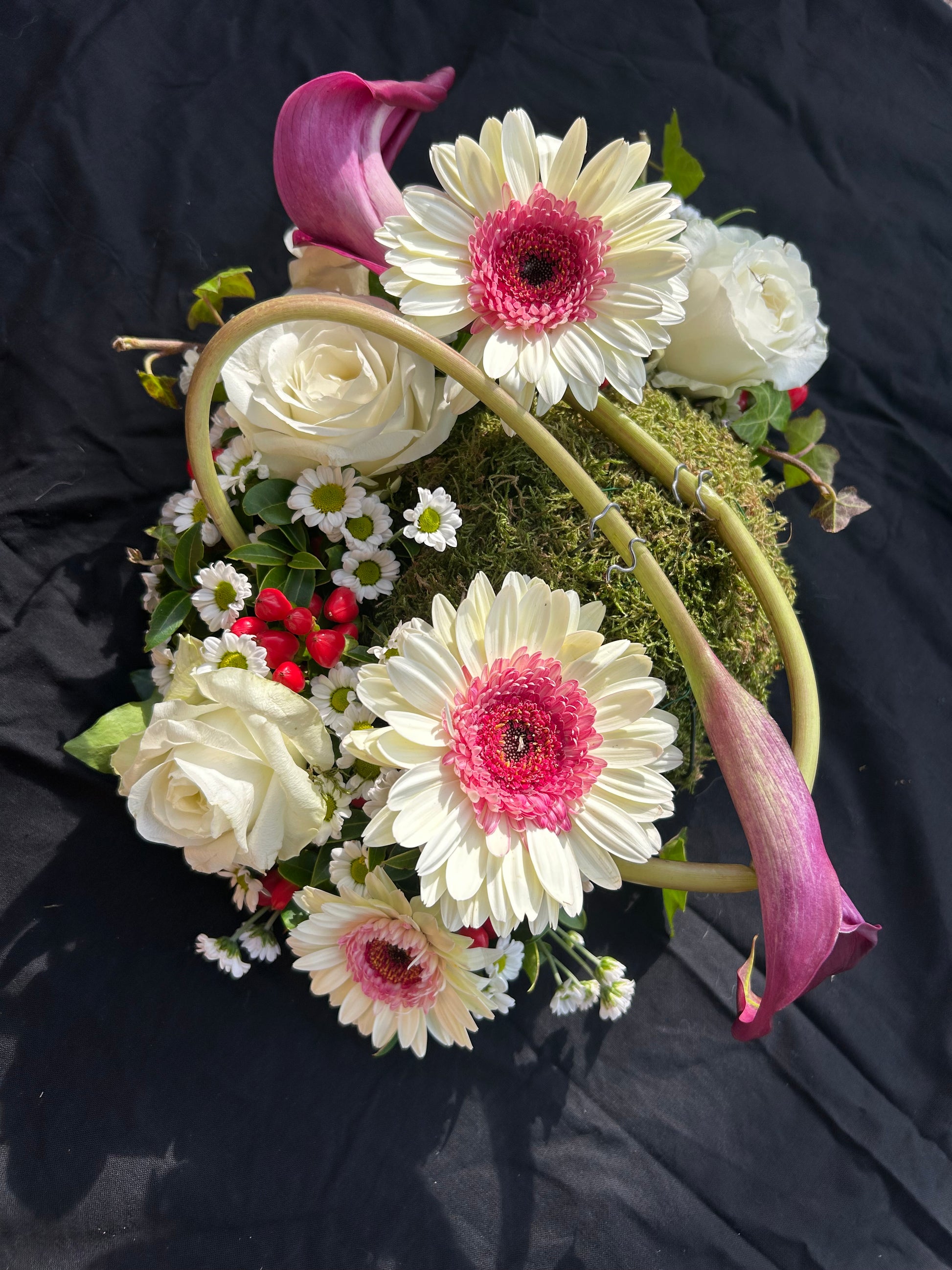 Dit stuk is gemaakt op een halve krans met halve mosbol