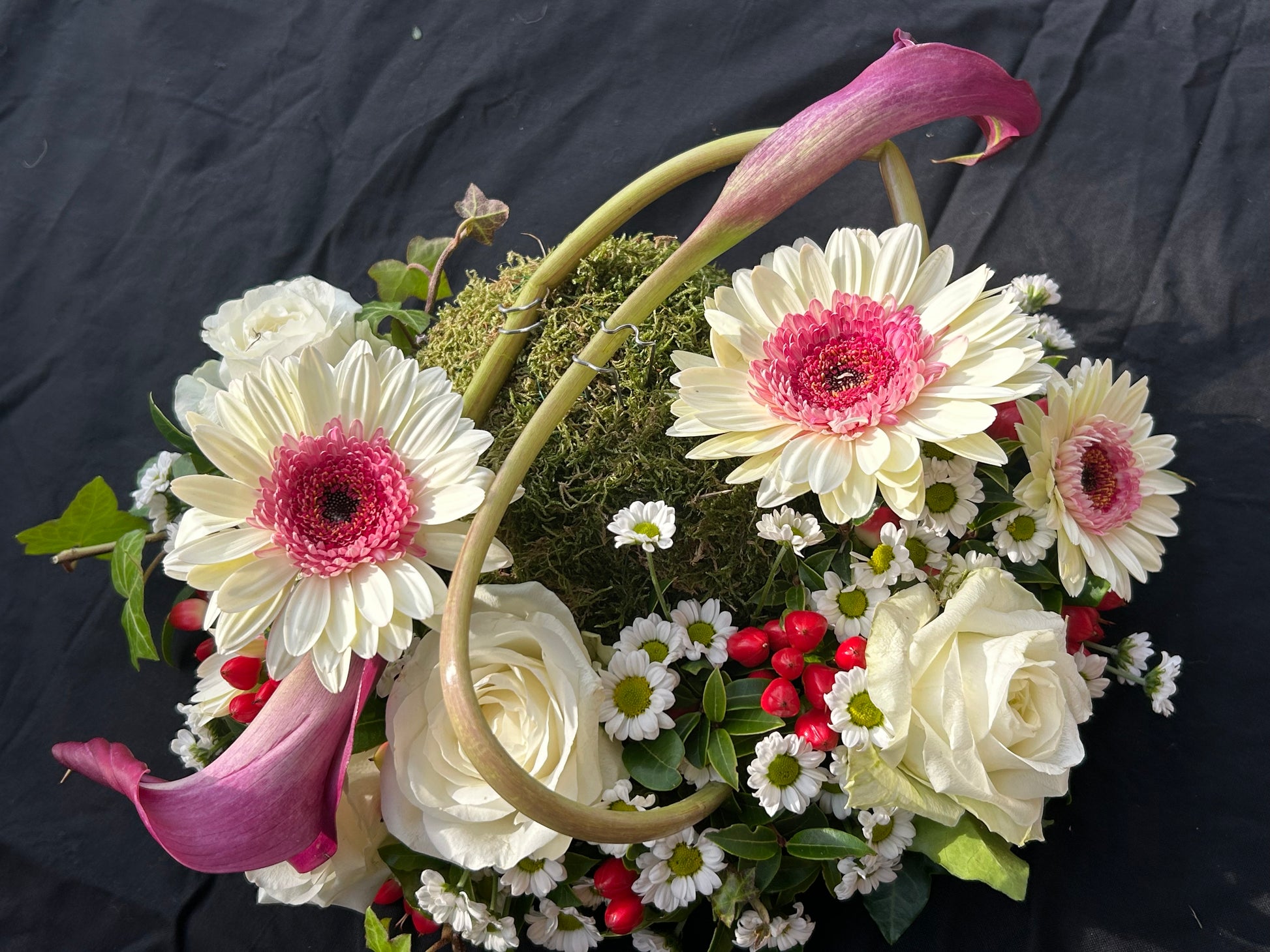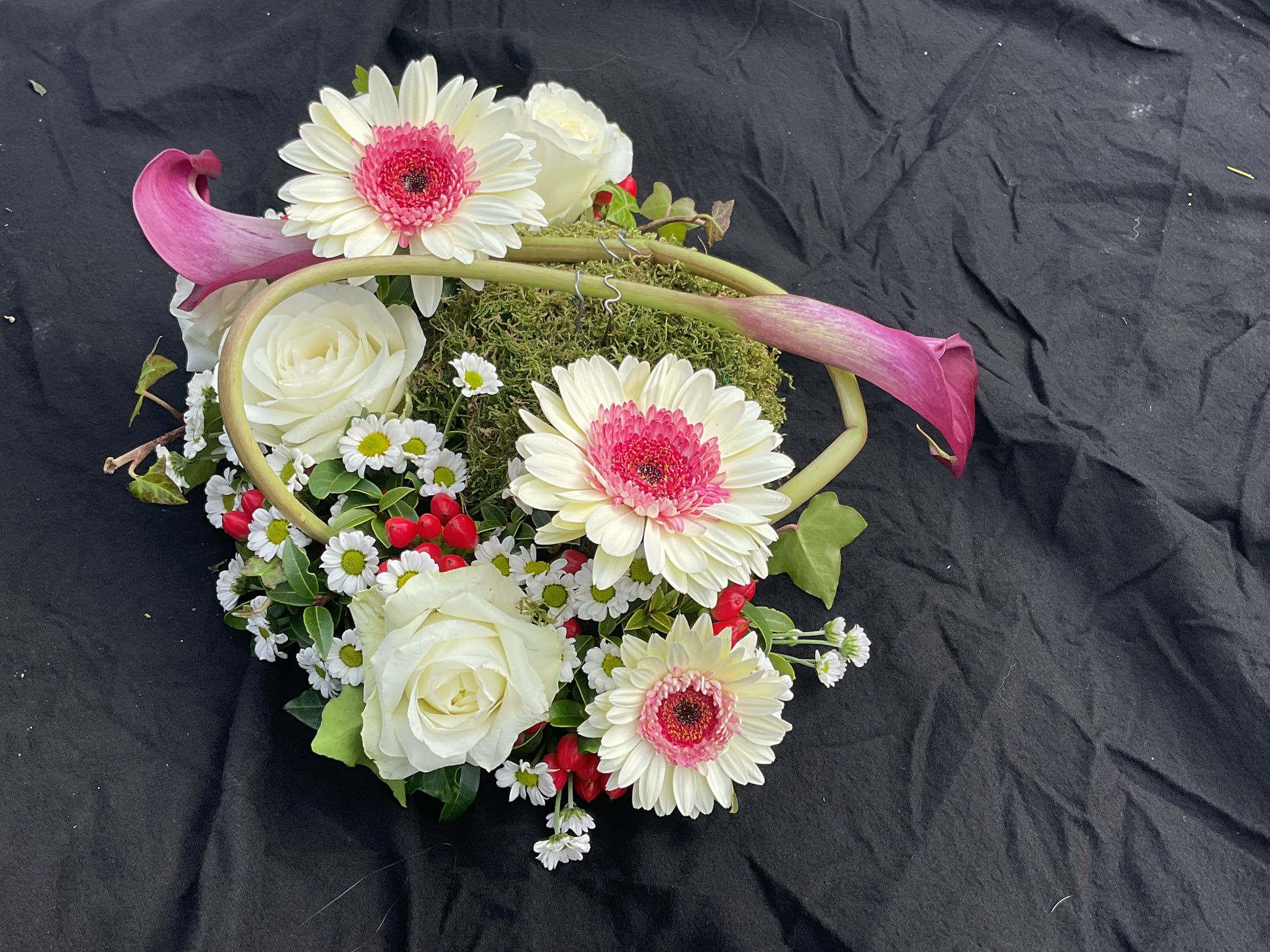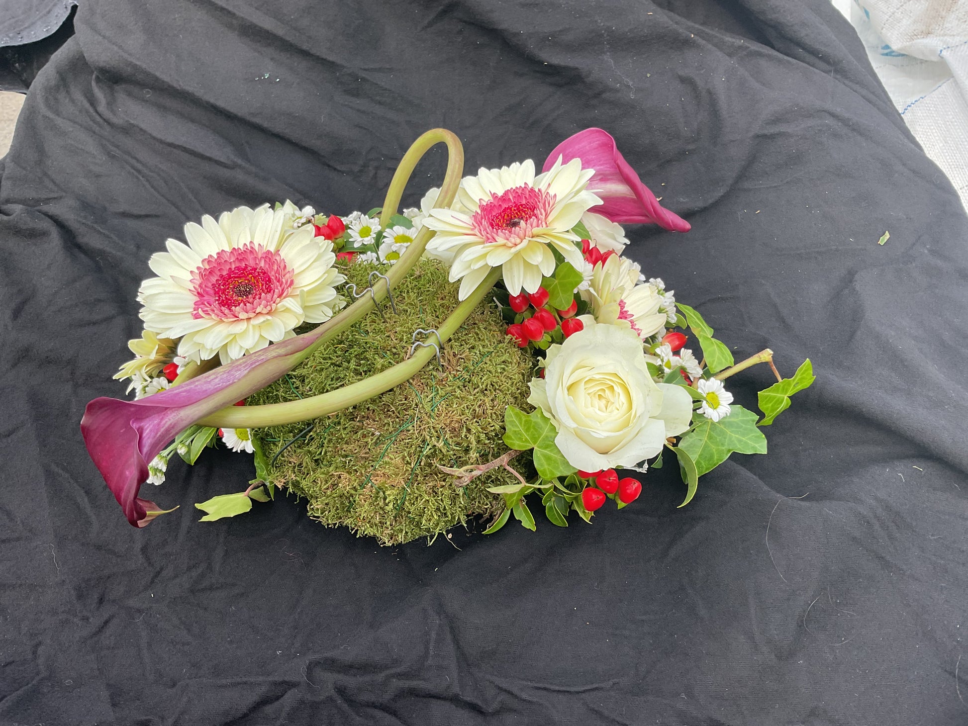 Dit stuk is gemaakt op een halve krans met halve mosbol