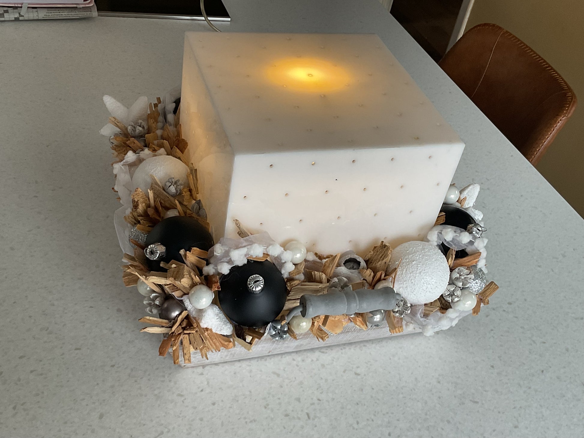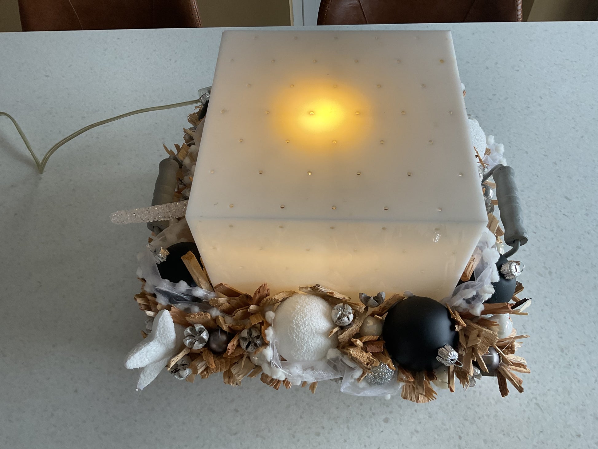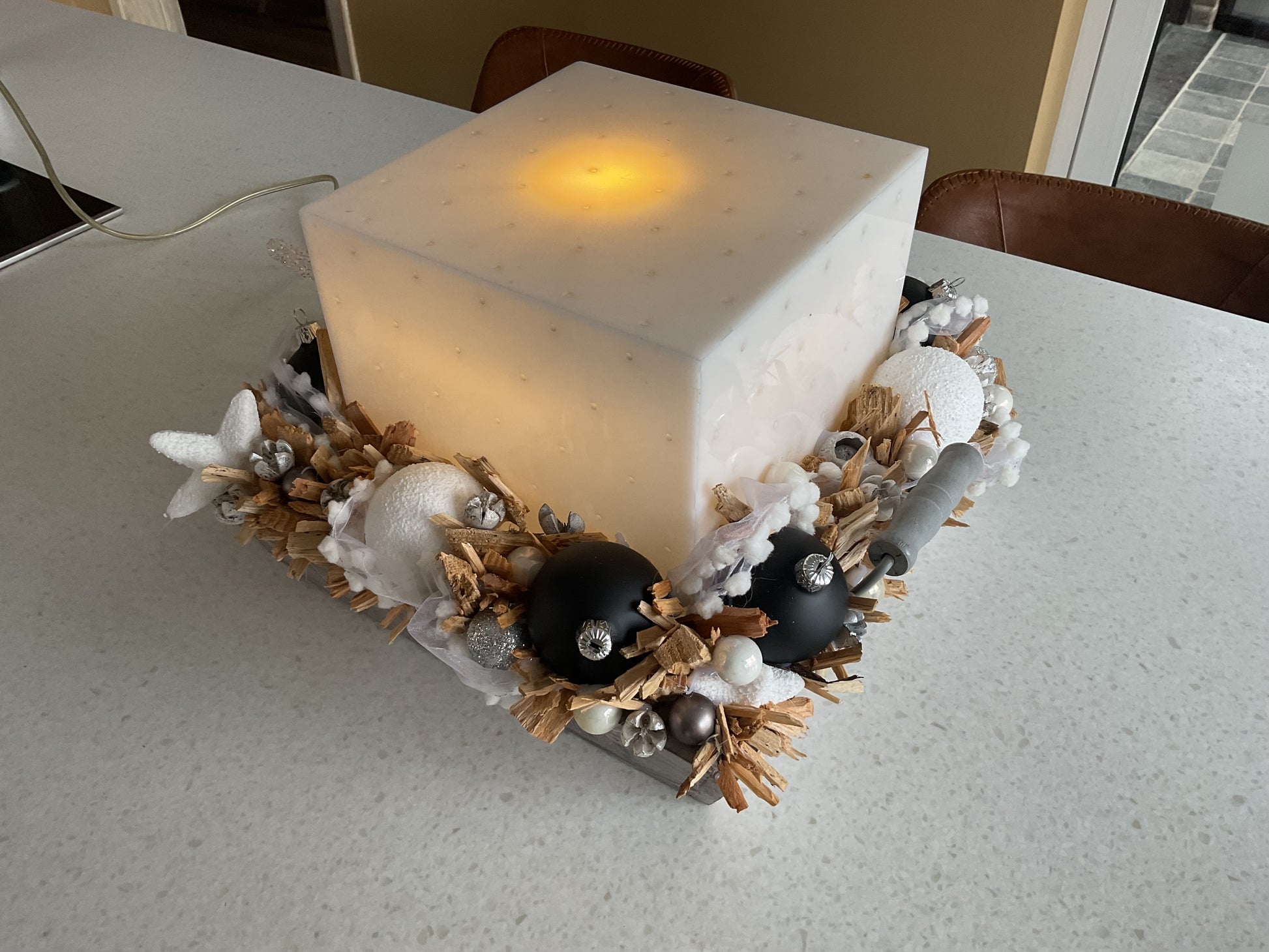 Stuk van 30 cm op 30 cm en een hoogte van 23 cm dat verlicht wordt met een stekker