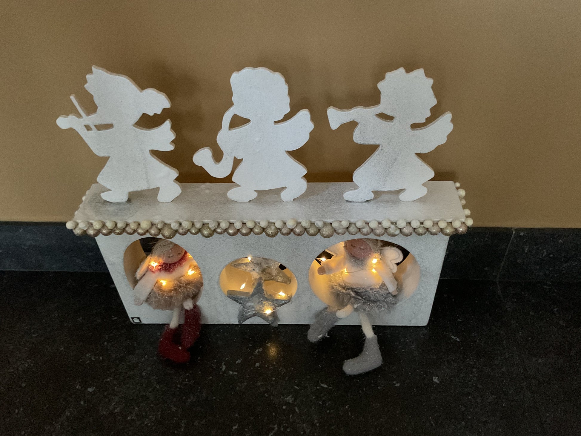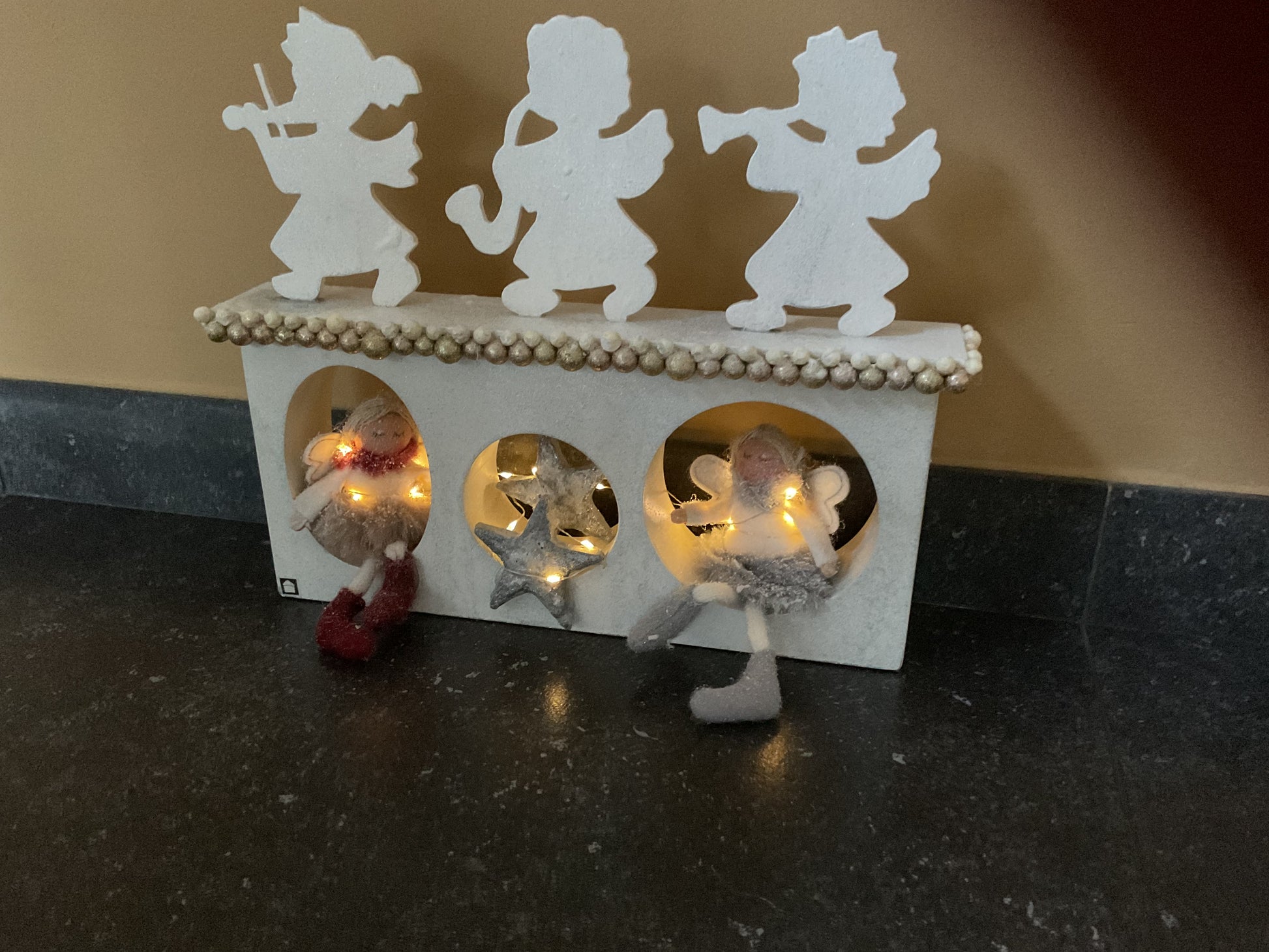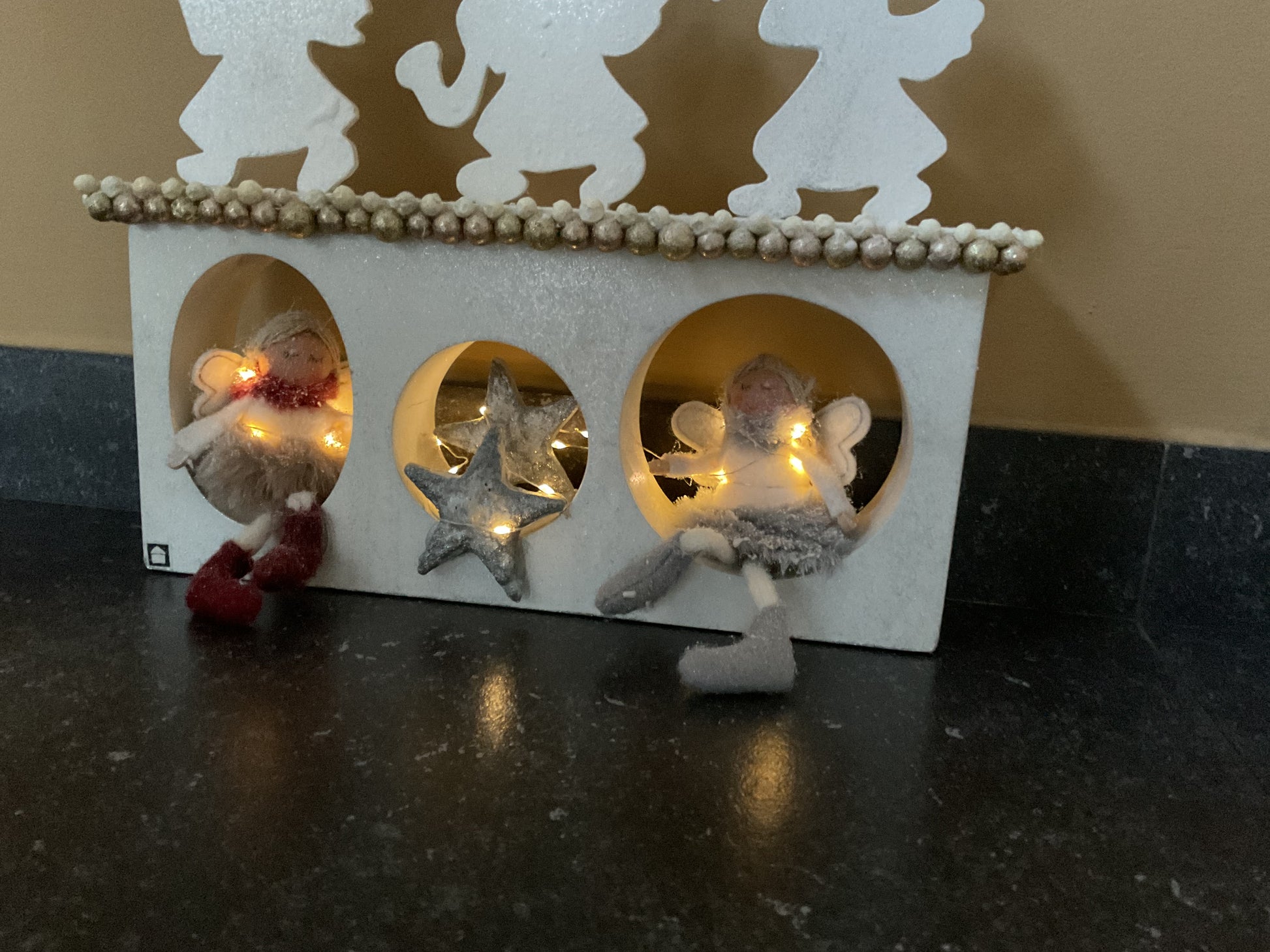 Kerststuk met lichtjes op batterijen met een hoogte van 27 cm, een breedte van 33 cm en een diepte van 5 cm